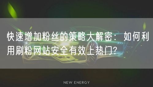 在当今社交媒体盛行的时代,拥有大量的粉丝意味着更高的关注度和更广泛的影响力。许多人都渴望快速增加粉丝数量,以此来提升个人品牌或产品的曝光度。本文将为你揭示一种利用刷粉网站安全有效地增加粉丝的策略,助你轻松登上热门。
