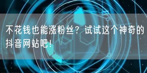 你是否在寻找一种不花钱也能涨粉丝的方法?今天,我要向大家介绍一个神奇的抖音网站,让你轻松实现这个目标!
