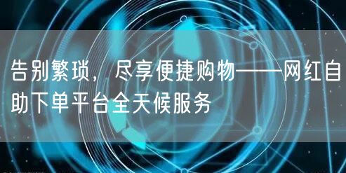 随着互联网的快速发展和智能手机的普及,人们的购物方式正在经历一场革命。告别传统的繁琐购物流程,现在我们可以享受到全天候的便捷购物体验。其中,网红自助下单平台因其简单易用、高效便捷的特点正受到越来越多消费者的欢迎。本文将带领大家一起探索这一全新的购物方式。