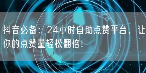 在抖音世界中,如何让自己的作品脱颖而出,获得更多关注和认可?答案就是拥有一个强大的点赞支持!今天,我要向大家介绍一款抖音必备神器——24小时自助点赞平台。